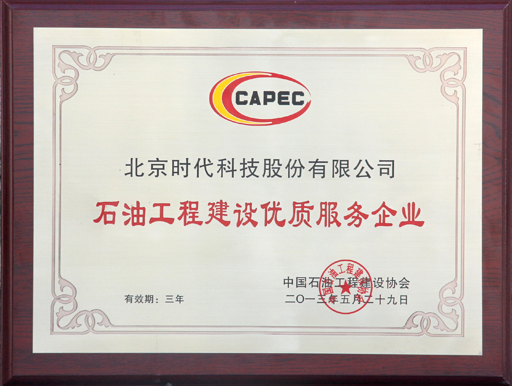 時代焊機榮獲“石油工程建設優質企業”稱號