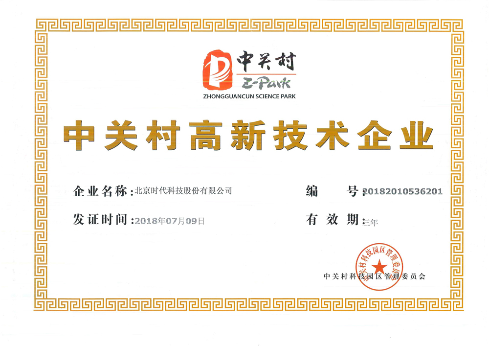 | 2015-01 | 高新技術企業 證書 | 北京市科學技術委員會 |